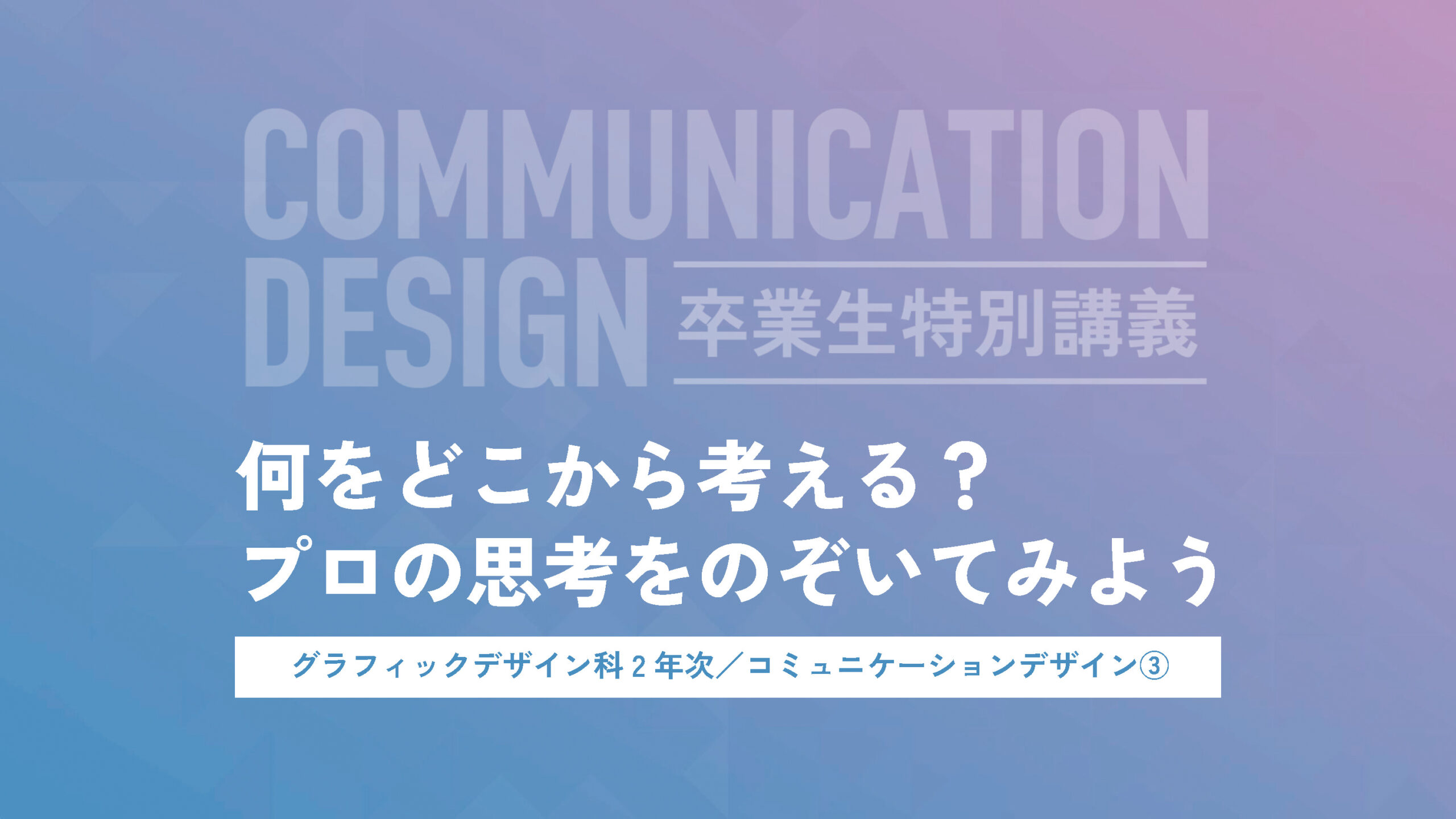 今回登壇させていただいたのは、グラフィックデザイン科2年次「コミュニケーションデザイン」の授業です。こちらは単なるレイアウトデザインの練習ではなく、社会課題解決などのメッセージをどのようにビジュアル化していくか?トーン&マナーやペルソナとは何か?など、デザインの上流工程にあたる部分を学習・実践し、最後には作品を展示するカリキュラムです。在学中に私も授業を受けたのですが、かなり抽象的で難しい授業であり、卒業制作の前哨戦として臨んだ記憶があります。