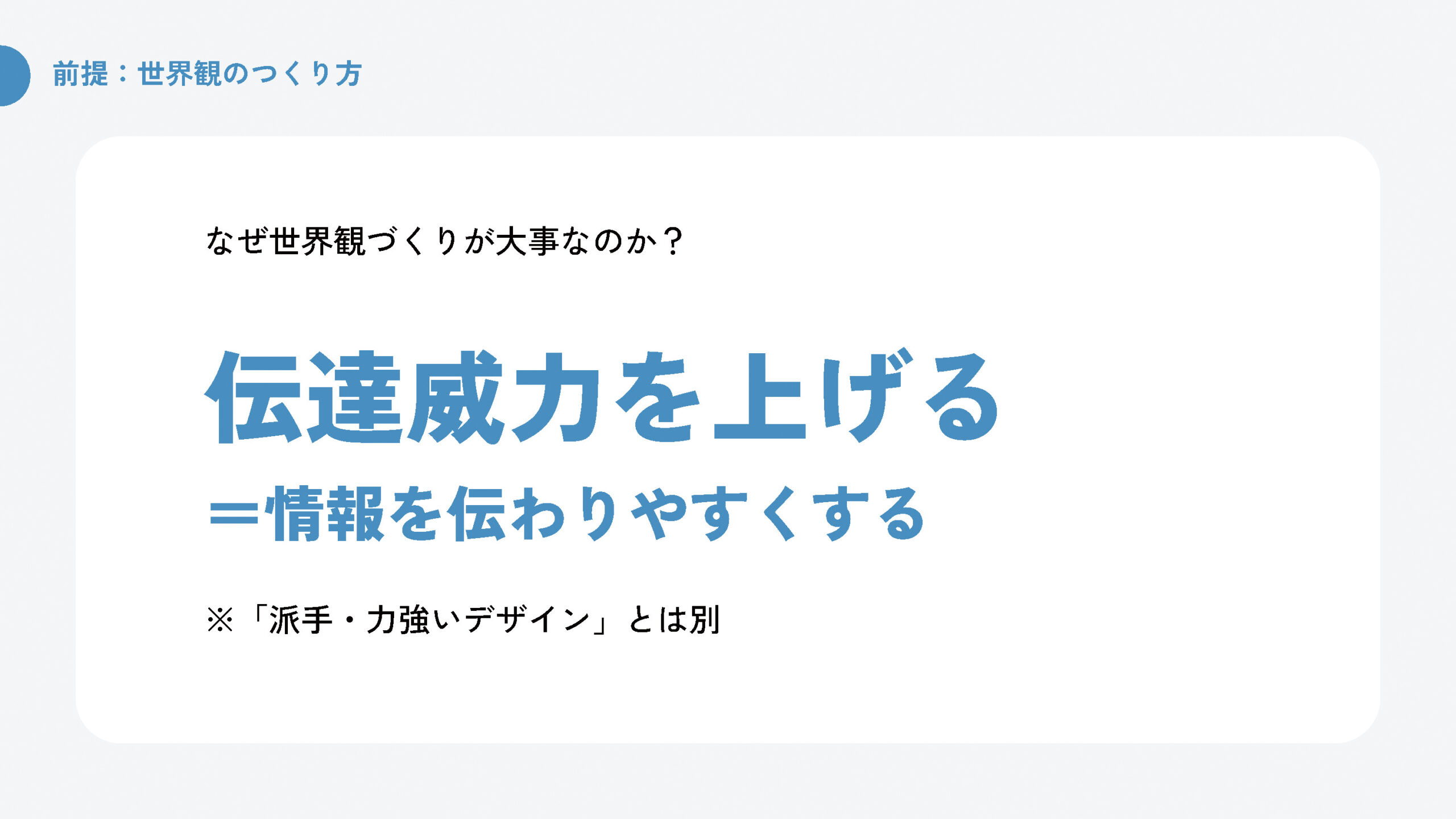 講義の1回目は、あらかじめ制作したGoogleスライド(84ページ)を使用し、「世界観・言語化の重要性」について講義を行いました。スライドデザインは、もちろん私によるものです。