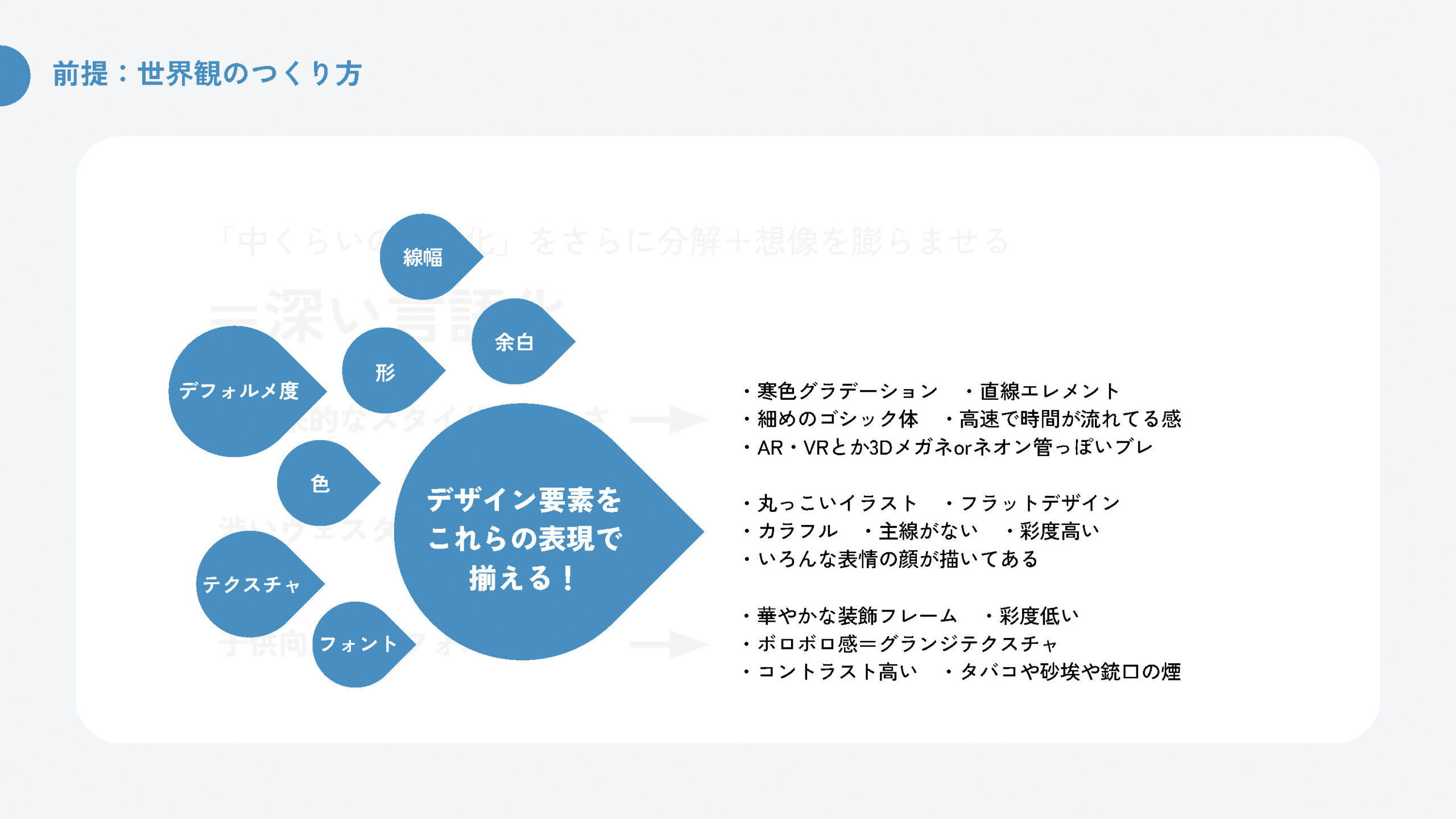 • ???のつくり方(→ 世界観のつくり方)