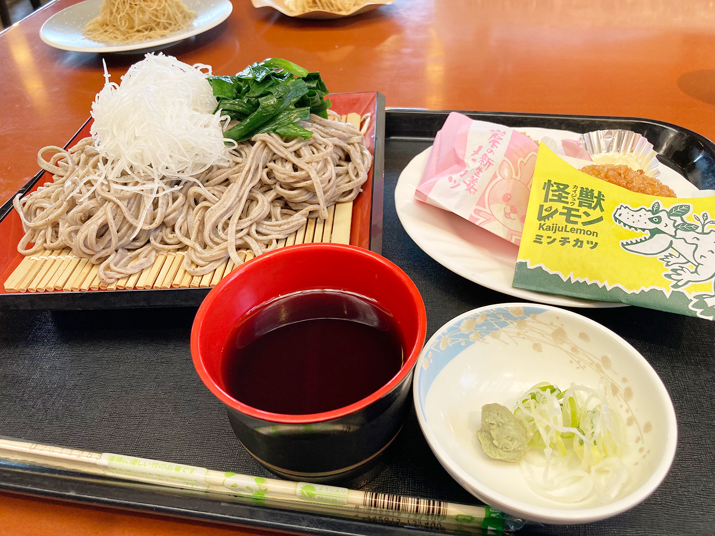撮影後は「ニラそば」「岩下の新生姜メンチカツ」「怪獣レモンミンチカツ」をいただきました。どれも大変美味しかったです。生姜やレモンのさっぱり味なメンチカツは、かなり売れているとの事でしたが、それも納得のおいしさでした。
